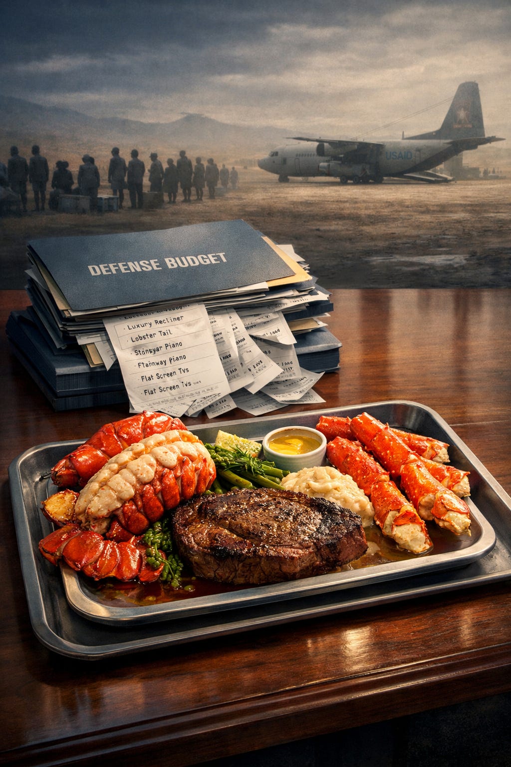 At the same time Americans were struggling with rising grocery costs, borrowing money just to buy food, and falling behind on car payments, the Pentagon was filling shopping carts with lobster and ribeye.